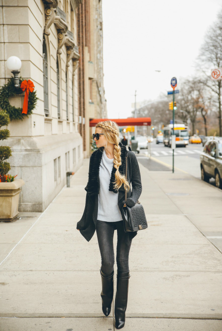SWEATER: Saks (on sale!) // BOOTS: Saks // JEANS: Anine Bing (on sale!) // SUNGLASSES: Karen Walker // BAG: Chanel via Fashionphile