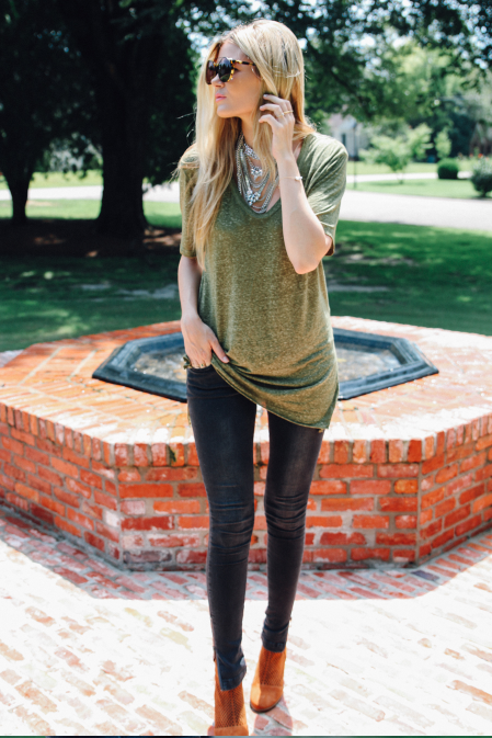 Can I just say how much I love love love booties?! I think my favorite combo has to be an oversized tee, skinnies, and booties. So easy and so comfortable. It also helps that they can be worn during the warmer months and then can be easily transitioned into fall and winter months. I especially love these Sole Society booties for warmer months because they have the hole detailing that lets your feet get a little breeze 🙂 Sole Society also has great price points annnd great quality and don’t you just love when you can say those two things in the same sentence??