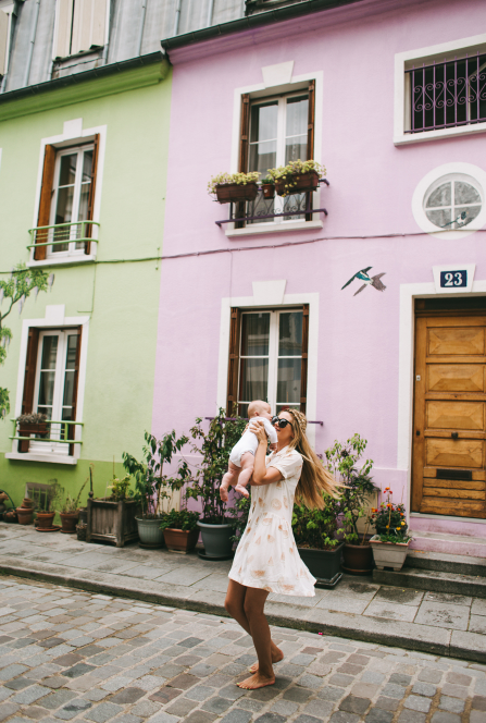 This street in Paris is the cutest thing on the entire planet and I am so jealous of every human who gets to live in one of these colorful homes. We totally lucked out and got to play on these streets just before it started to pour rain (I was barefoot of course, I mean gotta be in character right?? 😉 no but seriously we saw the rain coming and I didn’t want to ruin my Chanel shoes ha) And how cute are Beckam and Atticus playing? They were killing me. My friend Christine brought her 6 month old and they were so fascinated by each other – they would sit there and pet each others faces and not knowingly hold hands they kind of looked like little lovers hahah we were dying it was hilarious.